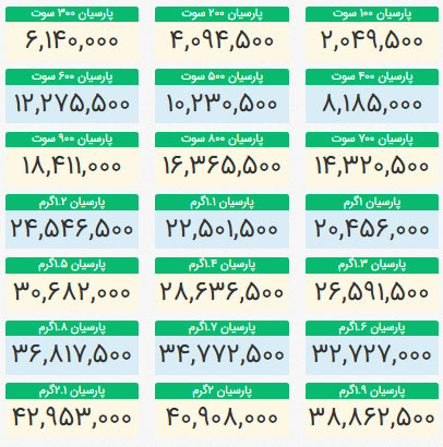 1404 شنبه 11 بهمن نسخه چاپی قیمت سکه پارسیان امروز شنبه 11 بهمن 1404؛ پارسیان 100 سوتی 2 میلیون را رد کرد! به گزارش ستاره صبح قیمت جدید انواع سکه پارسیان امروز شنبه 11 بهمن 1404 اعلام شد. Facebook Twitter Linkedin Whatsapp Pinterest Email لینک کوتاه https://setaresobh.ir/news/772926